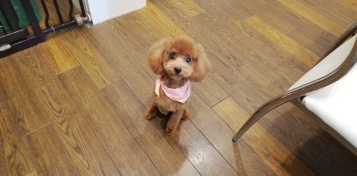 トイプードルの あずきちゃん お久しぶりです~♪ 左のお耳が汚れていて気になったのですが 痒がってはいないそう…