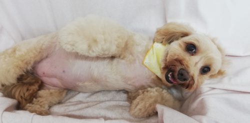 ダックスとプードルのミックス犬 夏ちゃん 今日は夏ちゃん始まりの第3水曜日(^^) お手入れ中も隙あらばペロっ…