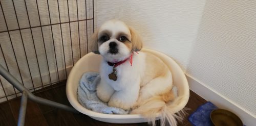 シーズーの こむぎちゃん 来店するなりベッドへ直行 収まりが良いみたい(^^) 今回から短く。。。 そして。。…