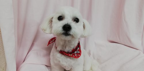 マルチーズとプードルのミックス犬 ルルちゃん キャリーバッグに入ってご来店♪ すっかり伸びていましたが 前回よ…