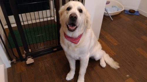 ゴールデンレトリバーのセナちゃん 手作りおやつが気に入ったみたい♪ いつもはおやつをあげてもあまり食べないのに…