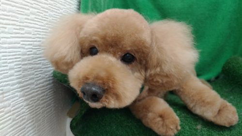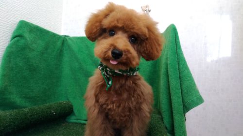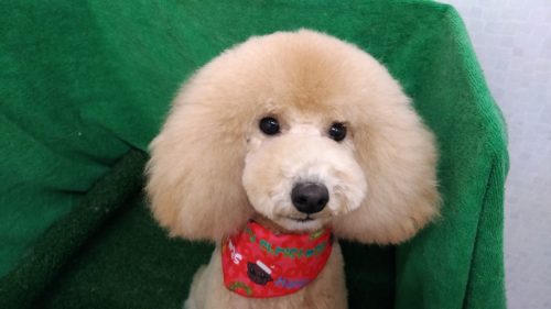 トイプードルのはなちゃん いつものお耳ポンポンはなちゃんカット(^^) 甘えん坊さんなはなちゃん お迎え待ちは…