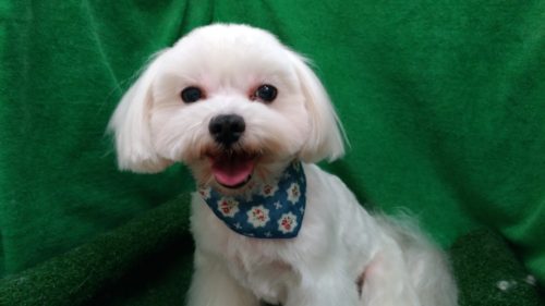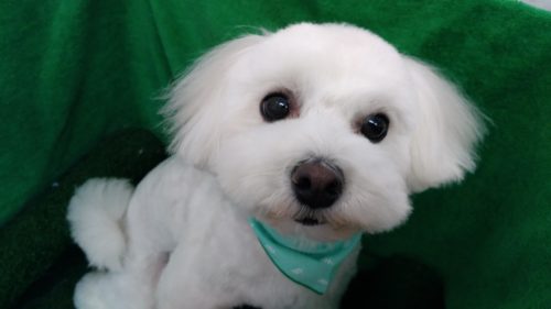 マルチーズとプードルのミックス犬 まるちゃん お手入れの間しきりに フン~フン~ と言いながらも 全工程を頑張…