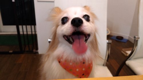 パピヨンのマロンちゃん 今日も笑顔全開(^^) ママさんから受け取ると顔をペロペロっと舐めて挨拶してくれました…