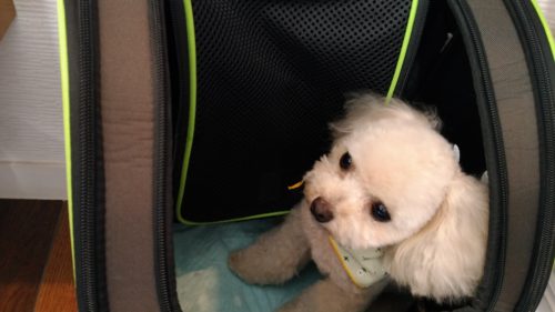 トイプードルのミエルちゃん いつもお預りの時はキャンキャン鳴くのですが 今回は何故か クゥ~ とちょっと寂し気…