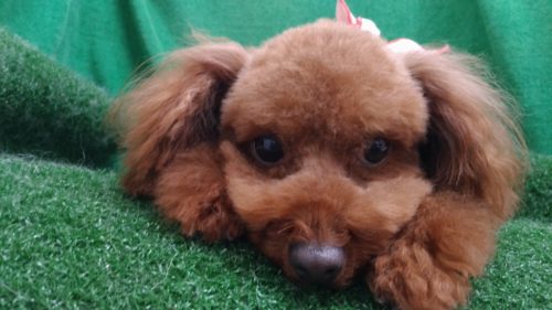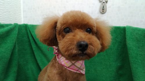 トイプードルのシェリちゃん 長く伸ばしていたお耳ですがブラッシングが苦手みたい(><)” 少し切っ…