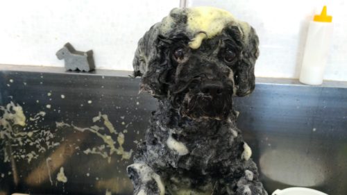 トイプードルのコロンちゃん 当初カットコースの予定でしたが 少し伸ばしてみようかとシャンプーコースに変更 でも…