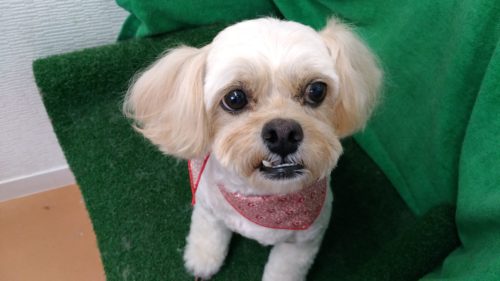マルチーズとプードルのミックス犬 小麦ちゃん まだ9ヶ月の女の子♪ とてもビビリさんですがお手入れ頑張ってくれ…