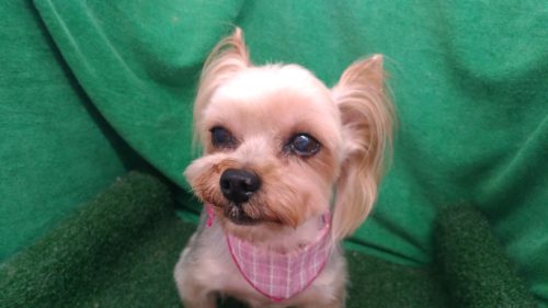 ヨークシャーテリアのクッキーちゃん いつものスッキリカットですが 今回は大事に伸ばしていたお耳の耳先をカット …