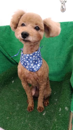 トイプードルのはなちゃん いつもと同じカット♪ 小さなお顔にポンポンお耳(^^) 今回も良い笑顔が撮れました♪…