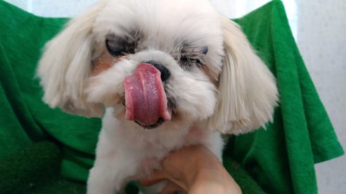 マルチーズとプードルのミックス犬 シエルちゃん 短くしたいなぁ~とママさん でも毛量や毛質を考えるといつもより…