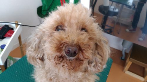当時湯予約で来てくれたトイプードルのりんちゃん 今回もおパンツカット継続です♪ そして今回は初めての足先バリカ…