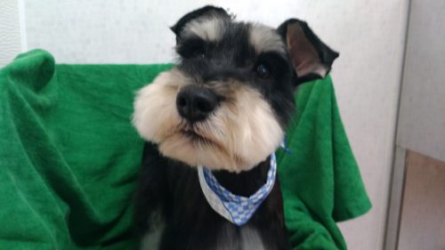 ミニチュアシュナウザーのボブちゃん 午後からのトリミングでしたが都合により朝からご来店 パパさん煩いのではない…
