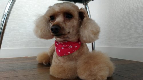 お任せカットのトイプードル ジャックちゃん 今回は特に変えず前回と同じカットにしました が。。。 頭の毛を伸ば…