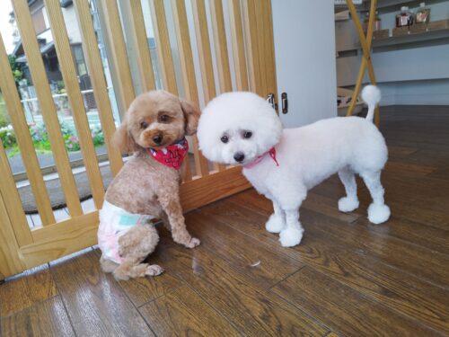 プードルのナッツちゃんとクーちゃん 2ワンコともお耳を伸ばして お嬢様な感じにしていく!つもり(^^) ナッツ…