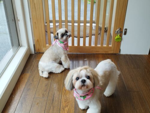 シーズーのつくしちゃん&あくびちゃん あいにくの雨(T.T) 帰りのタイミング もう少しゆっくり連絡すれば 雨…