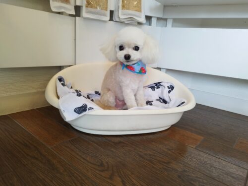 マルプーのそうたちゃんとプードルのあんずちゃん あんずちゃんのお耳は 以前より綺麗な感じ♪だけど 左の方だけ付…